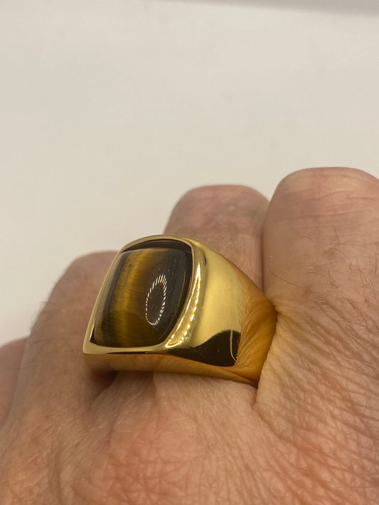 Vintage Gold Finished Stainless Steel Genuine Tigers Eye Ring
