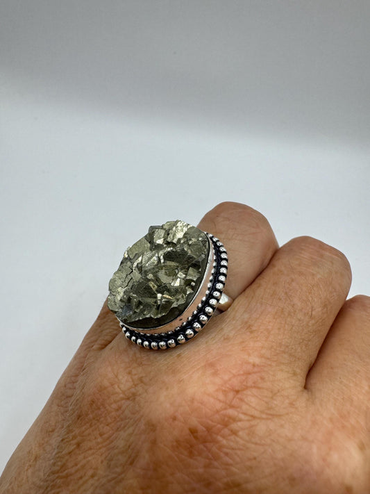 Vintage Gold Pyrite Silver Cocktail Ring Size 7.5
