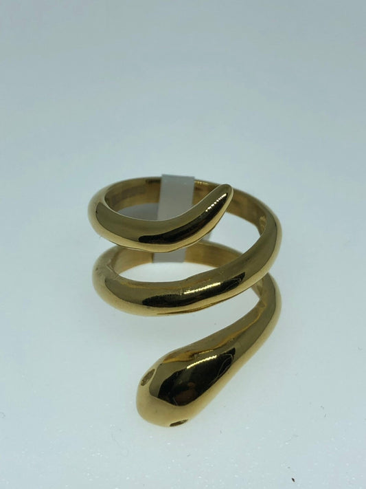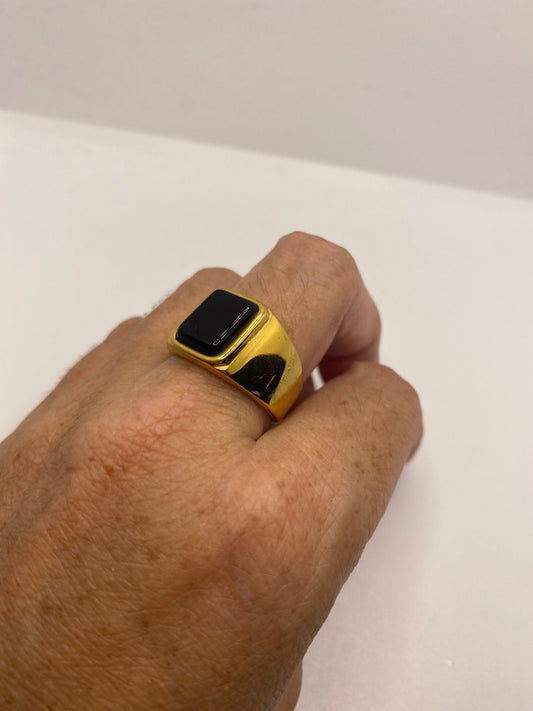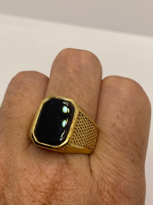 Vintage Golden Stainless Steel Black Onyx Genuine Ring