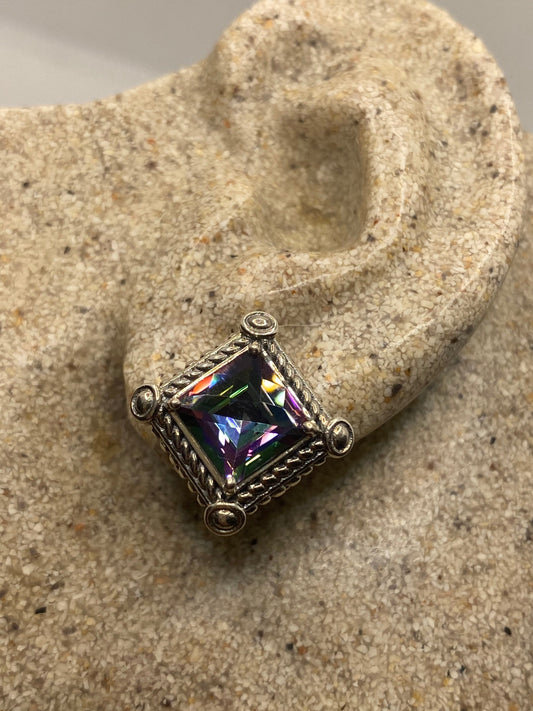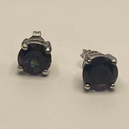 Vintage 925 Sterling Silver Deep Blue Mystic Topaz Button Stud Earrings