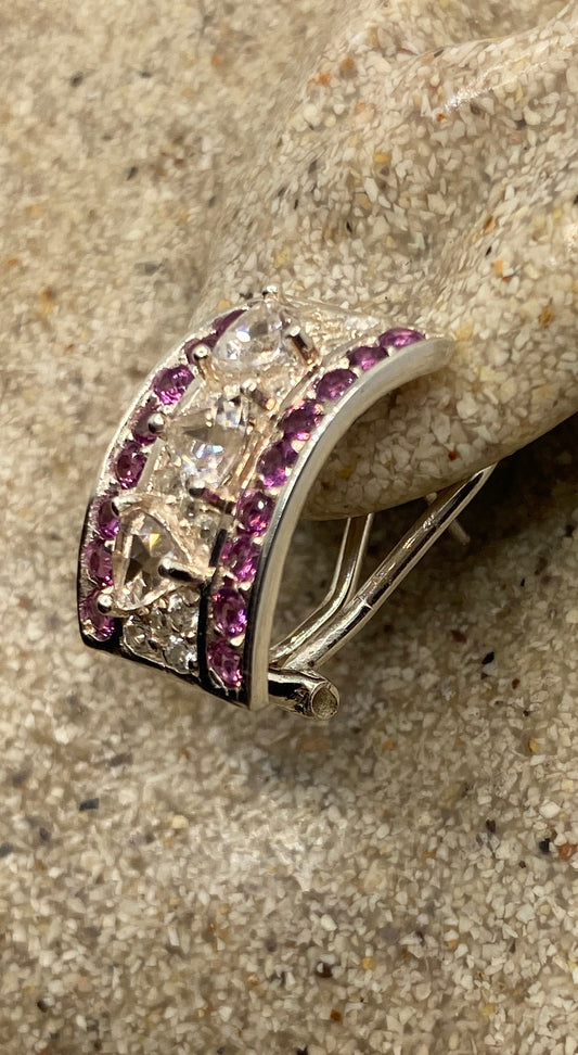 Vintage 925 Sterling Silver Deep Pink and Kunzite Ruby Earrings