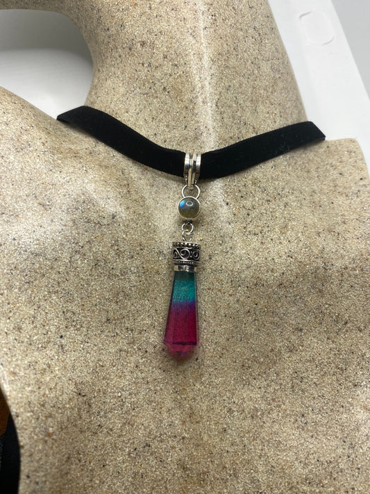 Vintage Antique Pink Blue Glass Choker Necklace