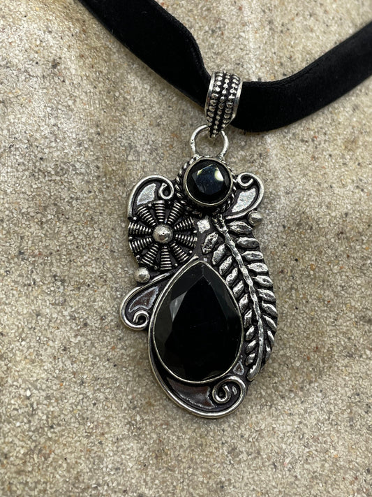 Vintage Antique Black Jet Glass Choker Necklace