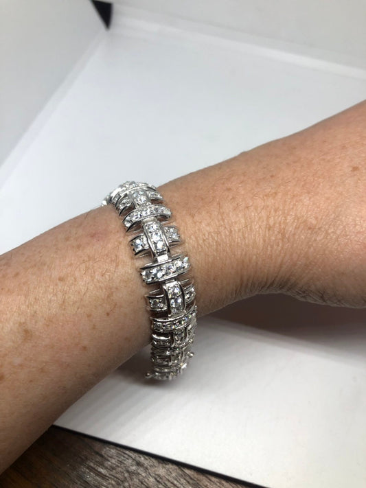 Handmade Genuine White Sapphires 925 Sterling Silver Tennis Bracelet