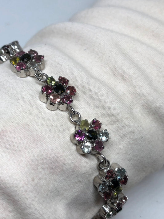 Vintage Handmade Watermelon Tourmaline 925 Sterling Silver Bracelet