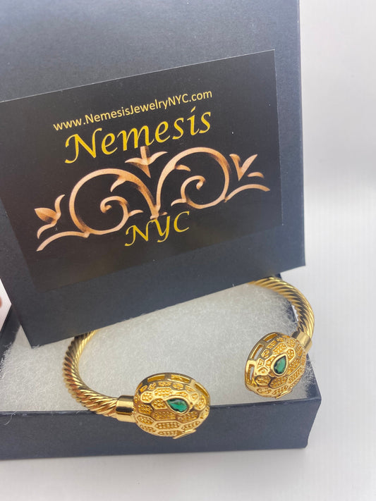 Vintage Snake Bangle Bracelet Gold filled Green Crystal Eyes