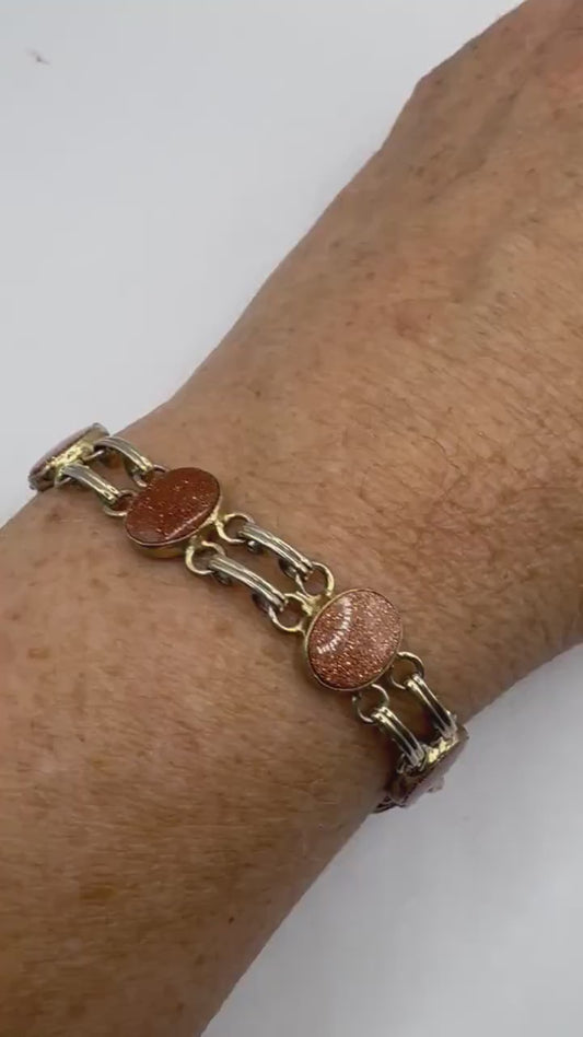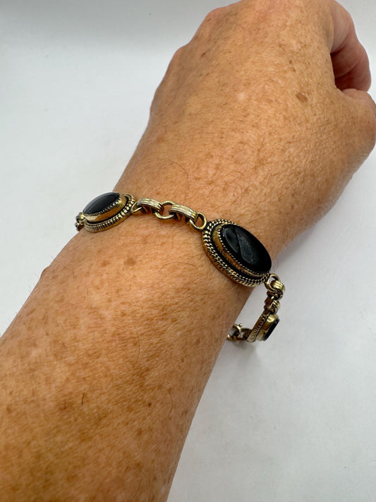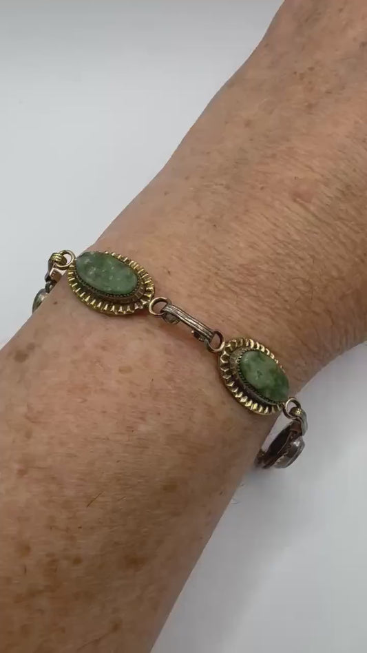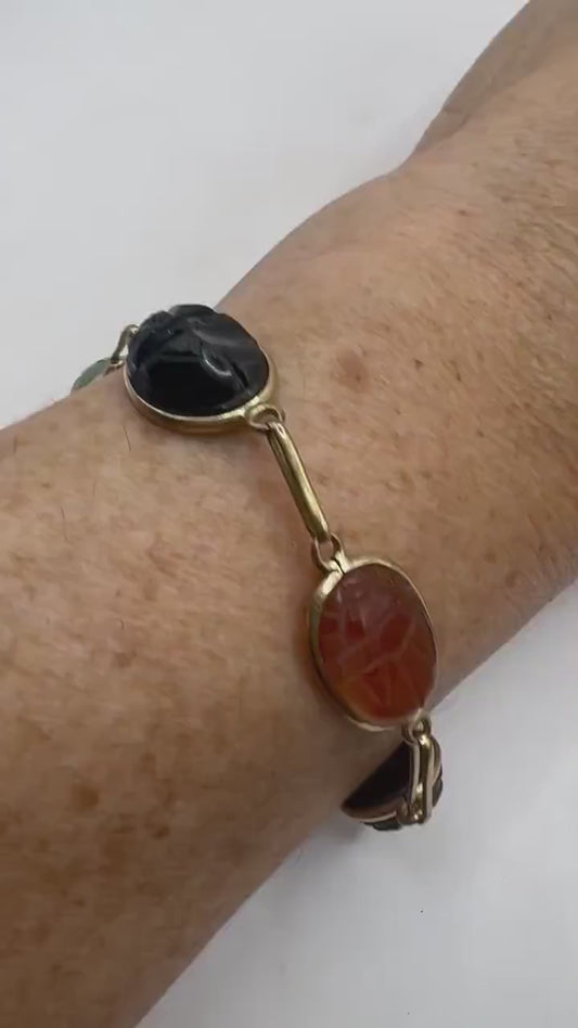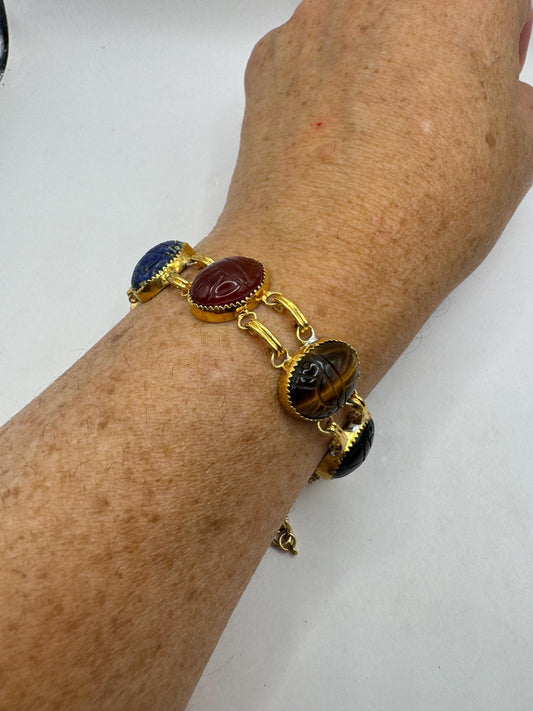 Vintage Scarab Bracelet Gold filled Carved Gemstones