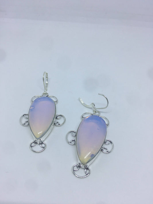 Antique Vintage Blue White Opal Glass Silver Dangle Earrings