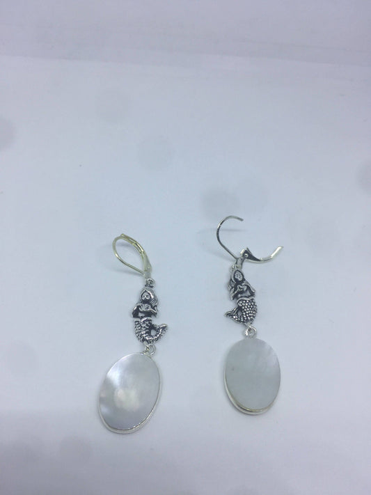 Antique Vintage White Mother of Pearl Silver Dangle Earrings