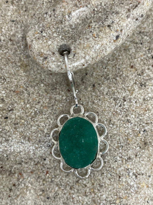 Vintage 925 Sterling Silver Chrome Diopside Druzy Chandelier Earrings