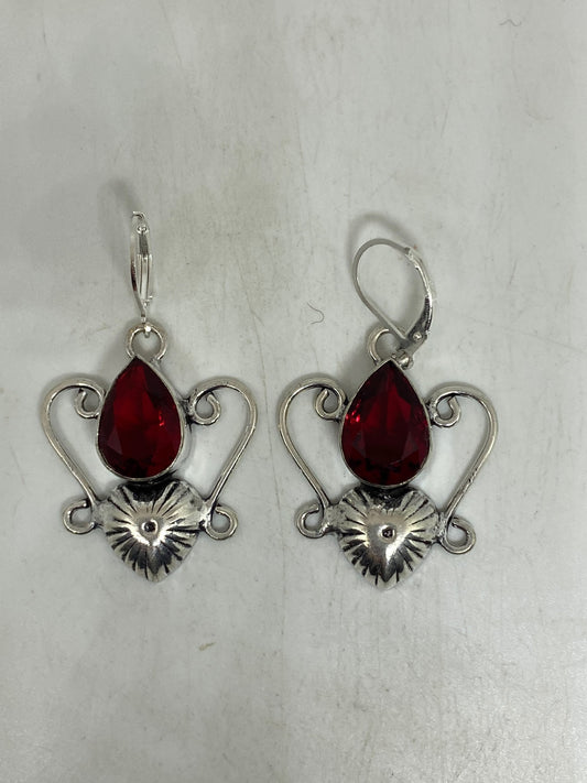 Vintage Genuine Garnet Sterling Silver Dangle Earrings