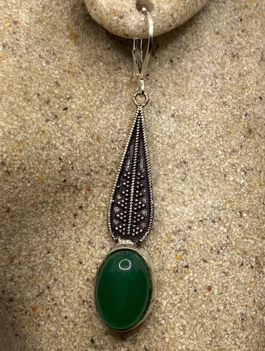 Antique Vintage Green Chrysoprase Silver Dangle Earrings