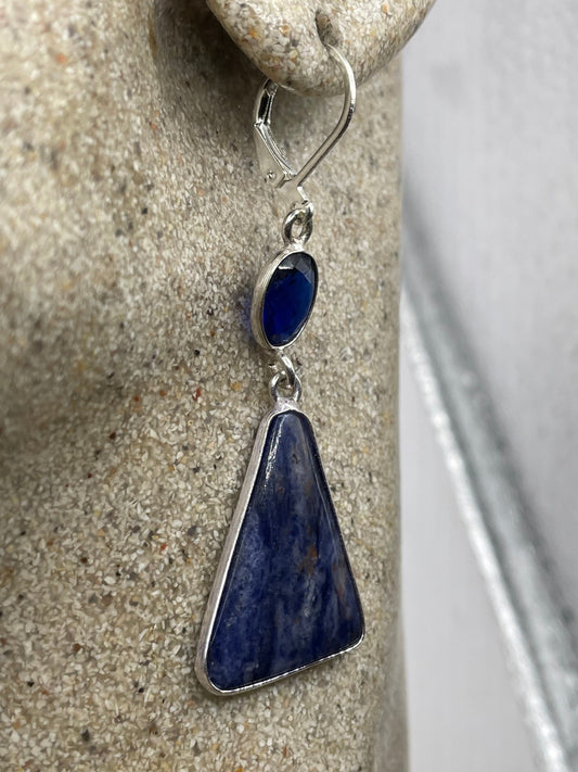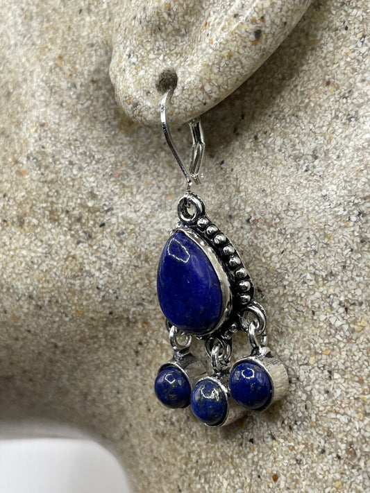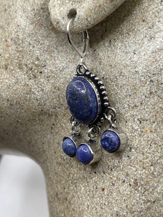 Vintage Blue Lapis Chalcedony Earrings Silver Dangle
