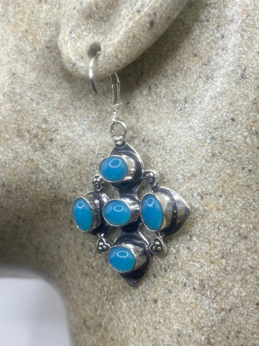 Vintage Blue Chalcedony Earrings Silver Lever back Dangle