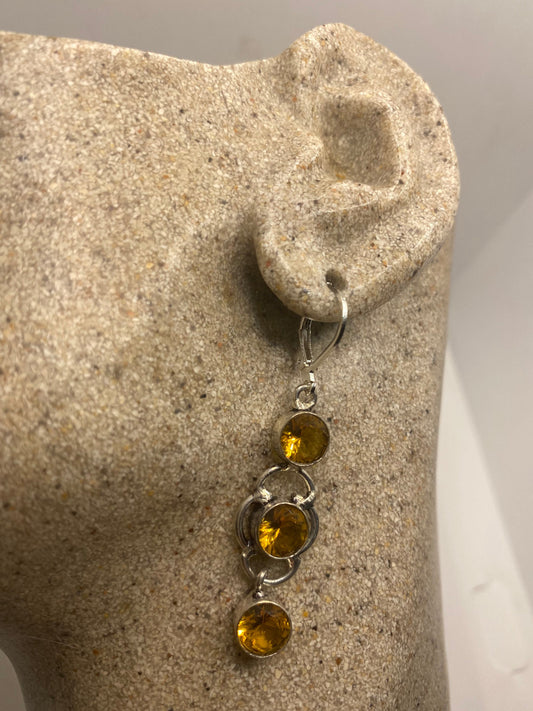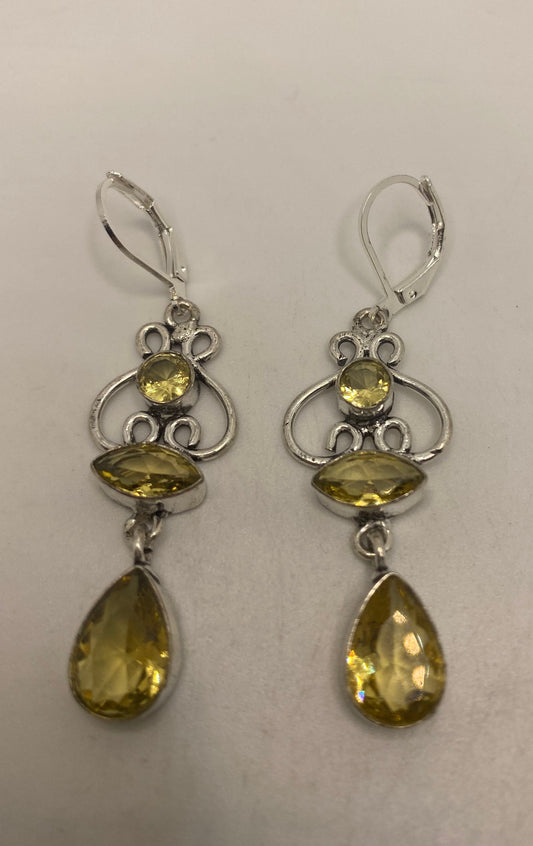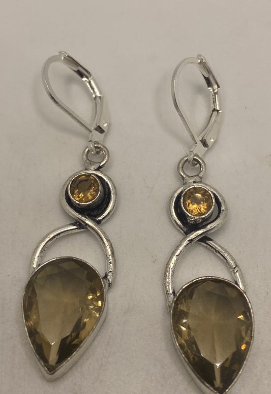 Vintage Citrine 925 Sterling Silver Lever Back Earrings