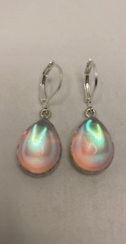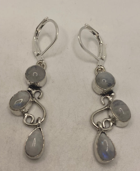 Vintage Rainbow Moonstone Sterling Silver Lever Back Dangle Earrings