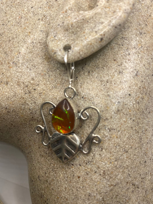 Vintage Opal Glass Silver Dangle Earrings Chandelier
