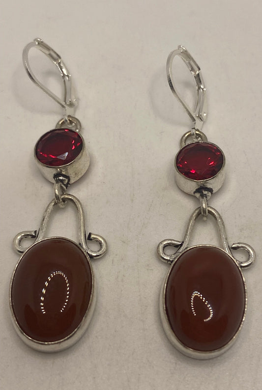 Vintage Red Carnelian 925 Sterling Silver Dangle Earrings