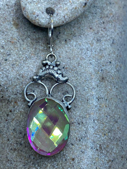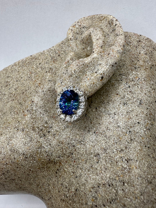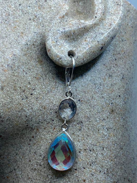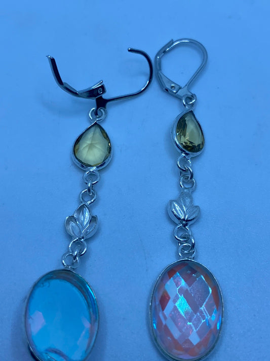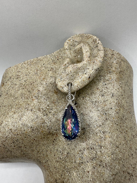 Vintage Blue Mystic Topaz White Sapphire 925 Sterling Silver Drop Earrings