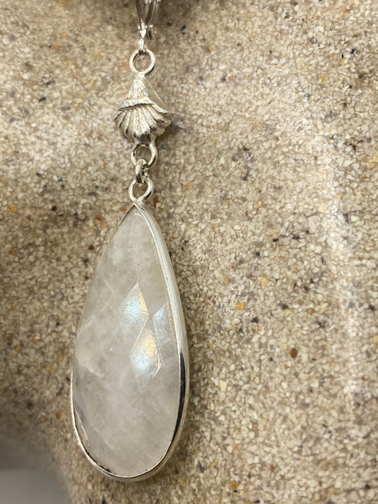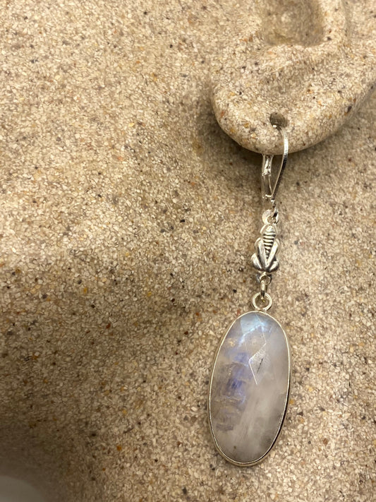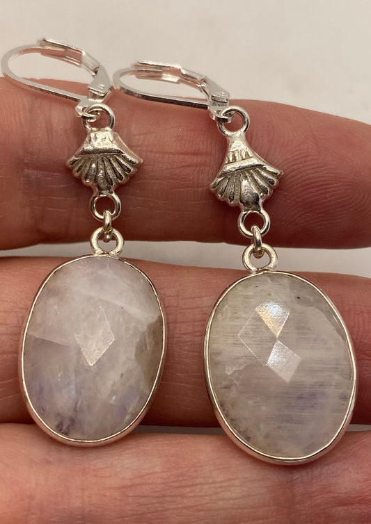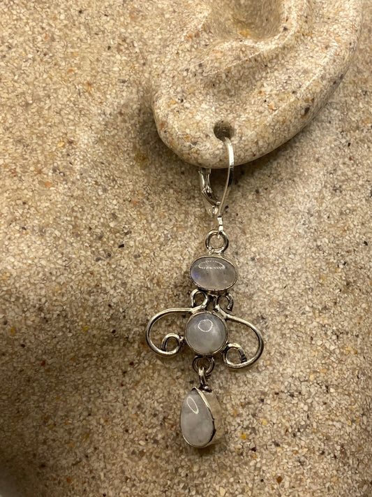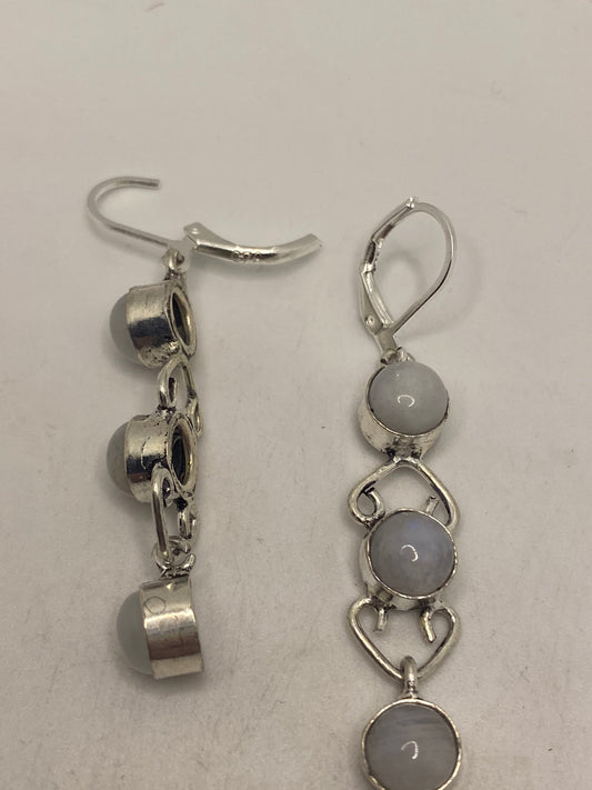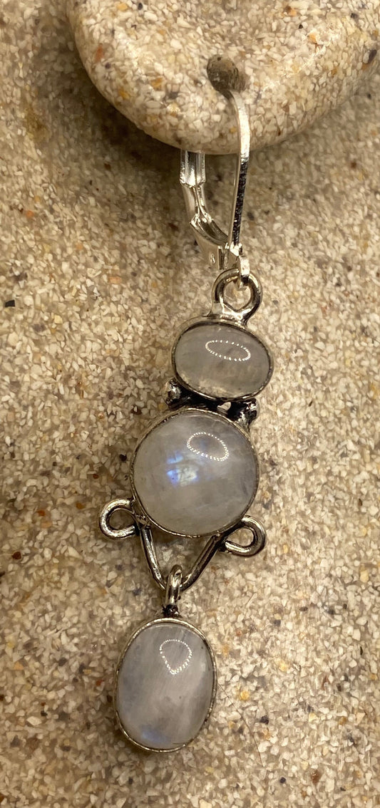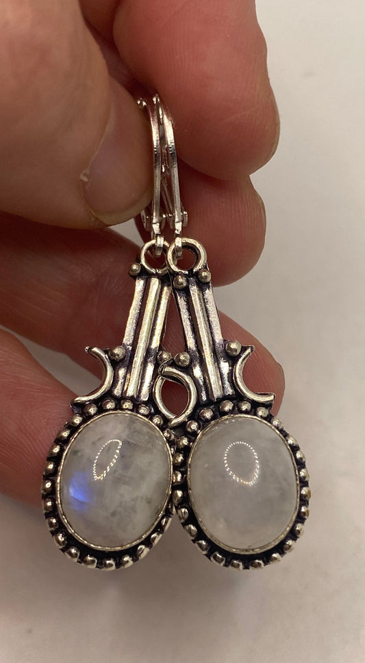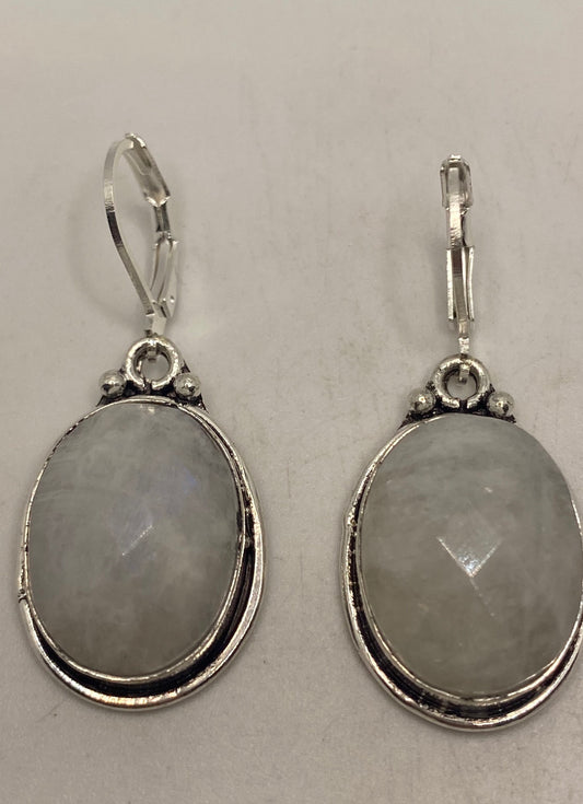 Vintage Rainbow Moonstone Sterling Silver Lever Back Dangle Earrings