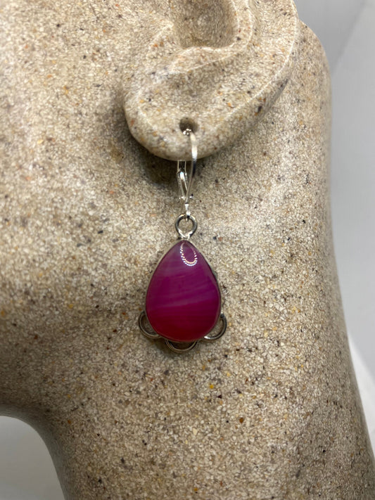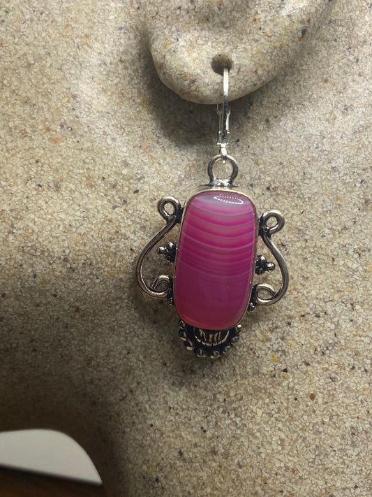 Vintage Pink Banded Agate Silver Dangle Leverback Earrings