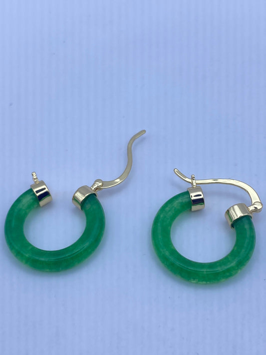 Vintage Fun Green Jade Hoop Earrings in Bronze