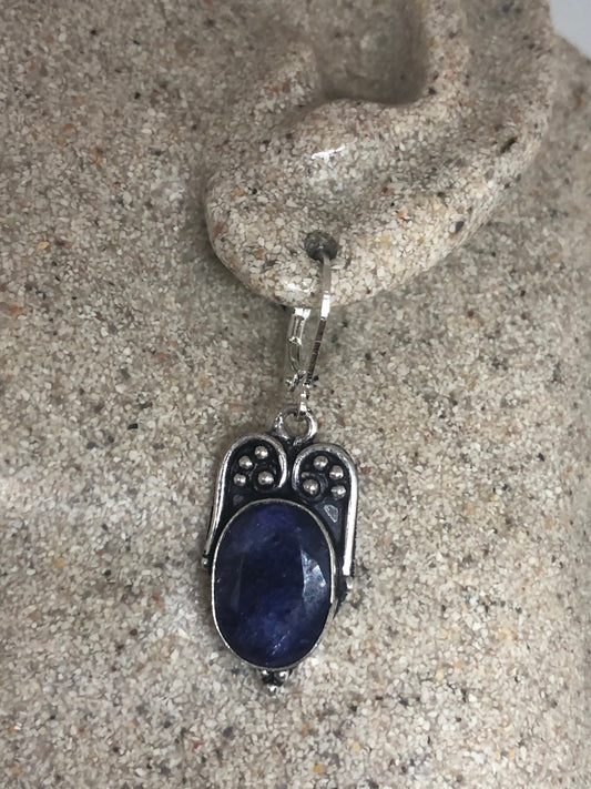 Vintage Blue Raw Sapphire Sterling Silver Lever Back Chandelier Earrings
