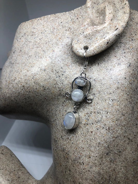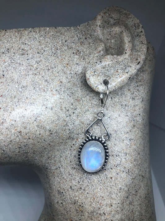 Vintage Rainbow Moonstone Sterling Silver Lever Back Dangle Earrings