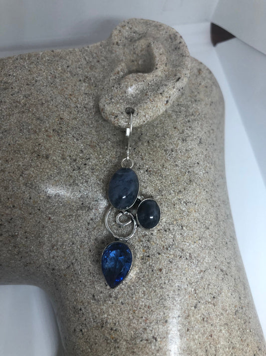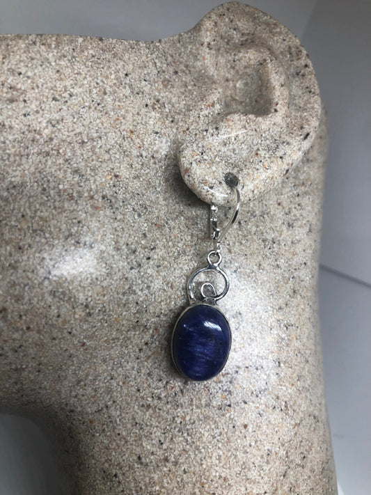 Vintage Sterling Silver Blue Iolite and lab Cats Eye Earrings