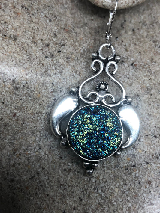 Vintage Sterling Silver Blue peacock ore Earrings