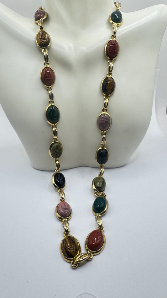 Vintage Perfume Oil Bottle mosaic Inlay Gemstone Pendant Necklace
