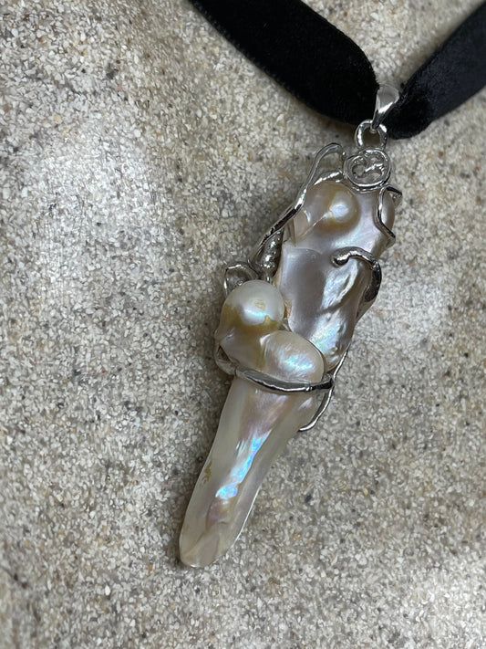 Vintage White Sapphire 925 Sterling Silver Mother of Pearl Dangle Pendant Necklace