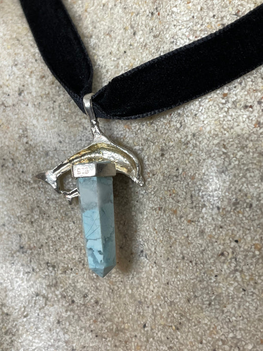Vintage Dolphin Choker Blue Larimar 925 Sterling Silver Necklace