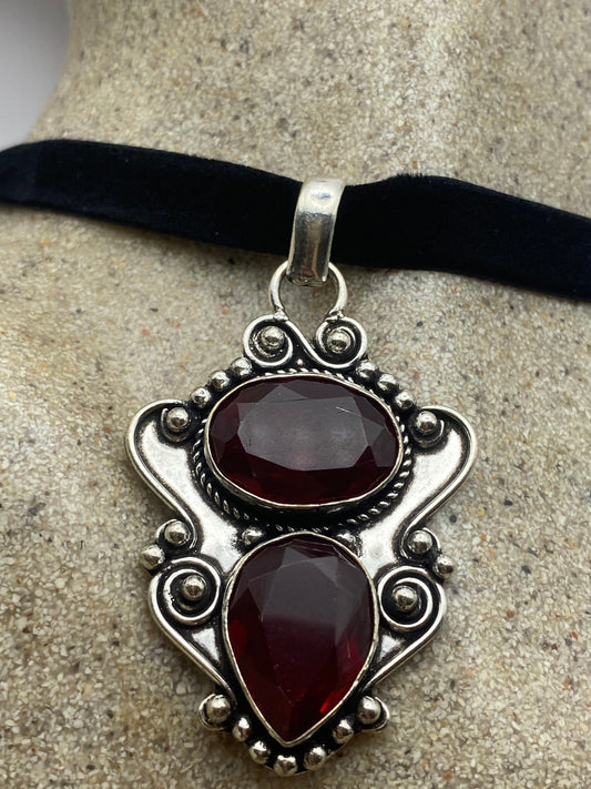 Vintage Ruby Glass Black Velvet Choker Necklace