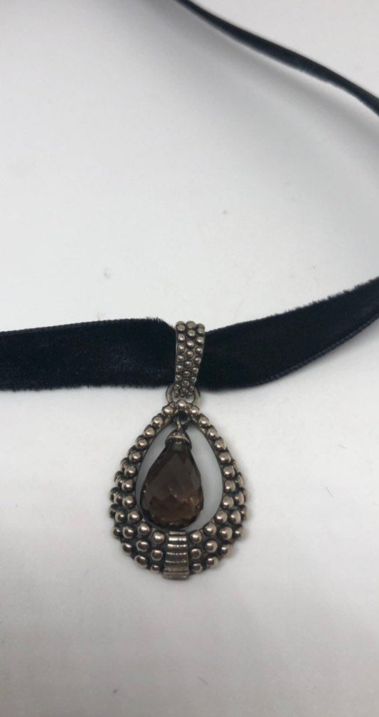 Vintage Smoky Topaz Choker 925 Sterling Silver Pendant Necklace