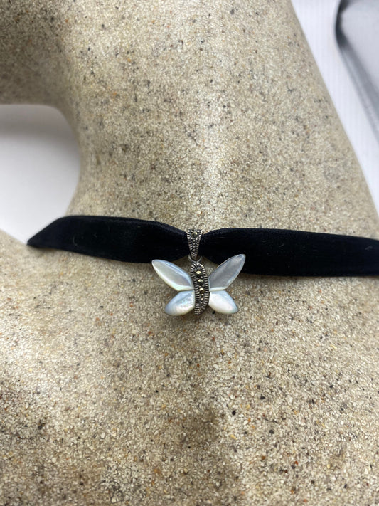 Vintage Locket Choker Silver Pewter Butterfly Deco Etched Necklace
