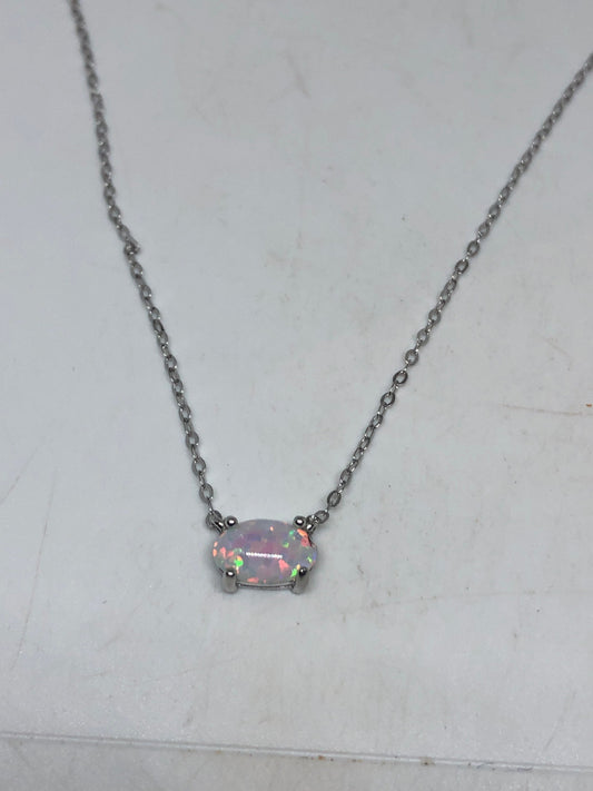 Vintage White Opal Choker 925 Sterling Silver Pendant Necklace Velvet