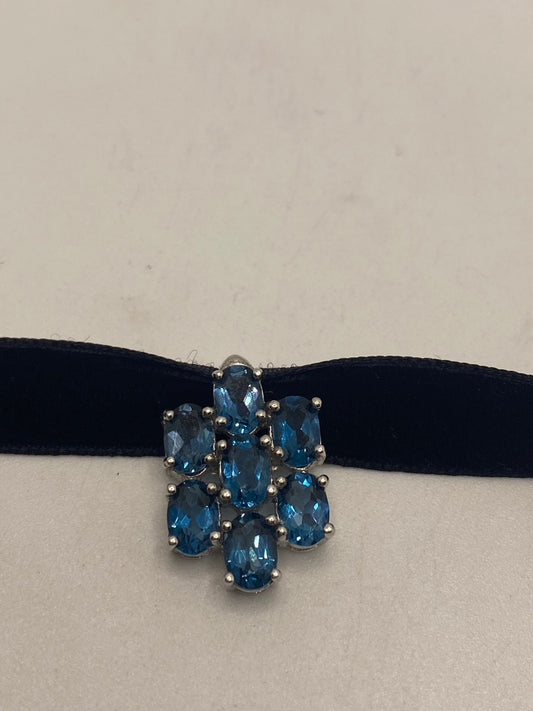 Vintage Blue Topaz 925 Sterling Silver Choker Necklace Pendant
