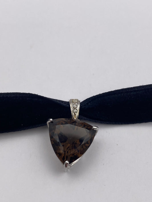 Vintage Smoky Topaz Diamond Choker 925 Sterling Silver Pendant Necklace