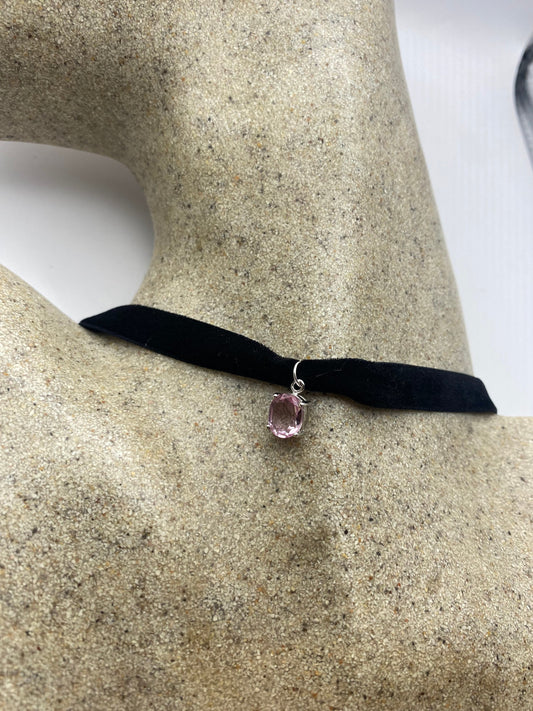 Vintage Pink Tourmaline Choker 925 Sterling Silver Antique Pendant Necklace