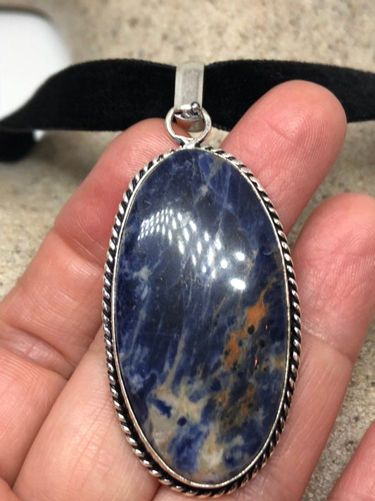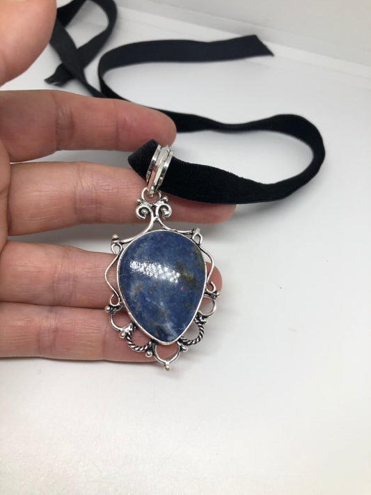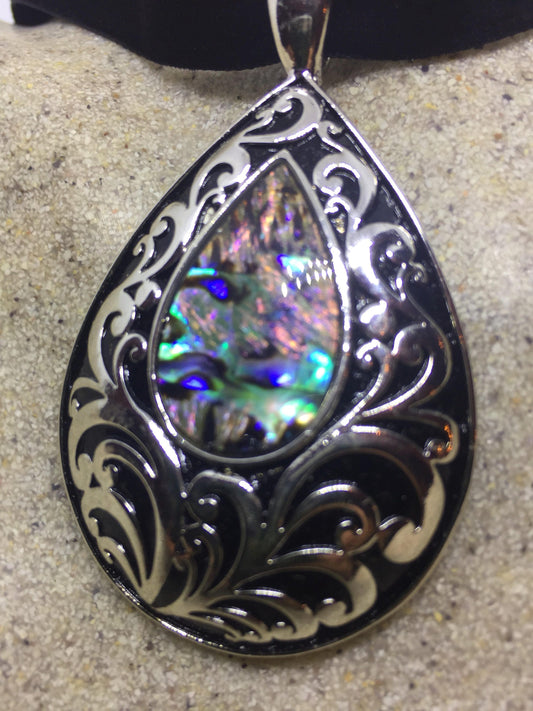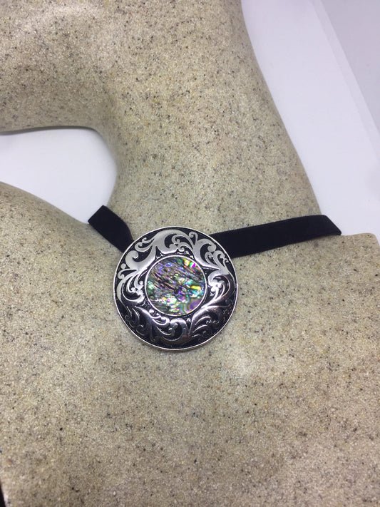 Blue Handmade Gothic Styled Silver Finished Genuine Facetted Antique Abalone Choker Necklace