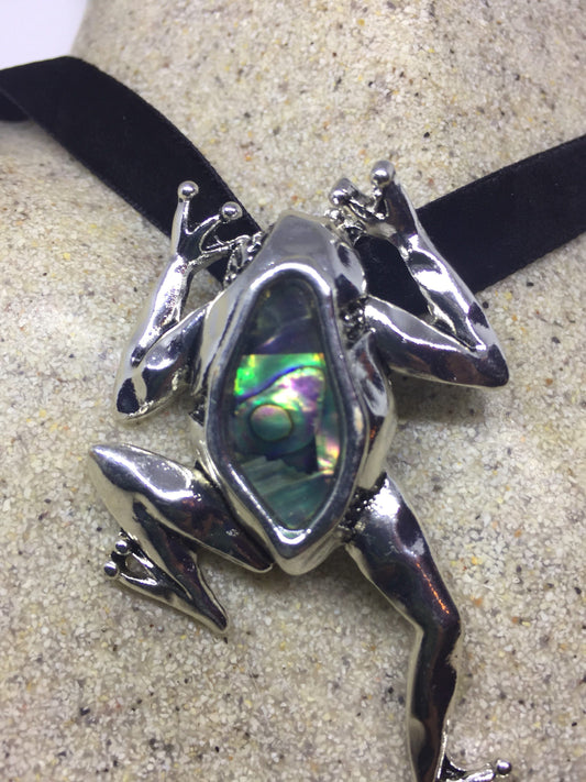 Blue Handmade Gothic Styled Silver Finished Genuine Abalone Frog Choker Necklace