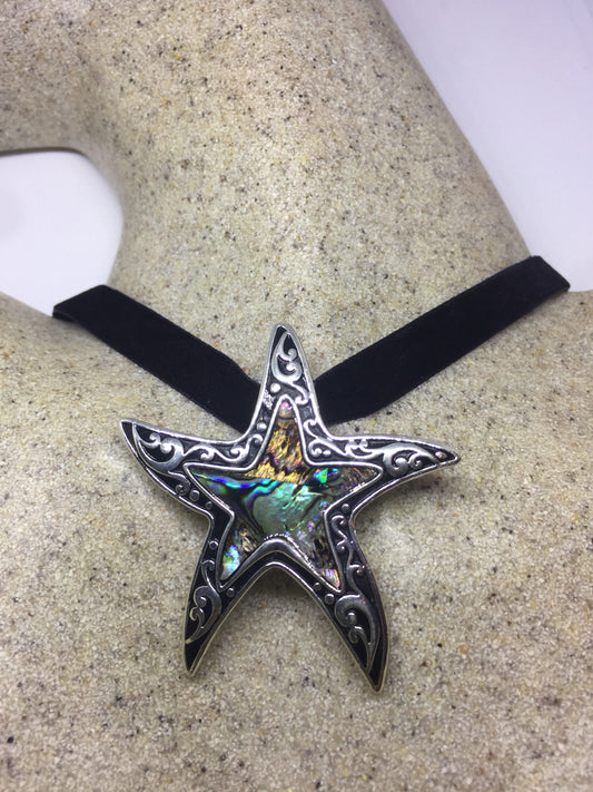 Blue Handmade Gothic Styled Silver Finished Genuine Abalone Star Fish Choker Necklace