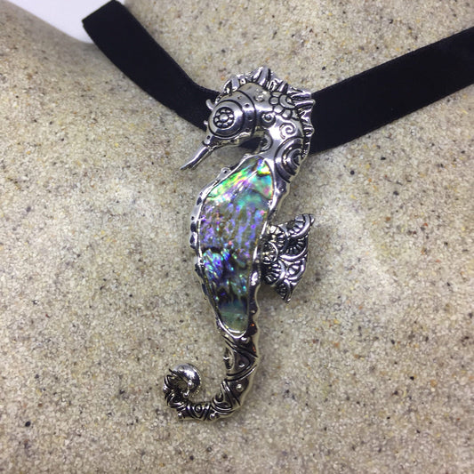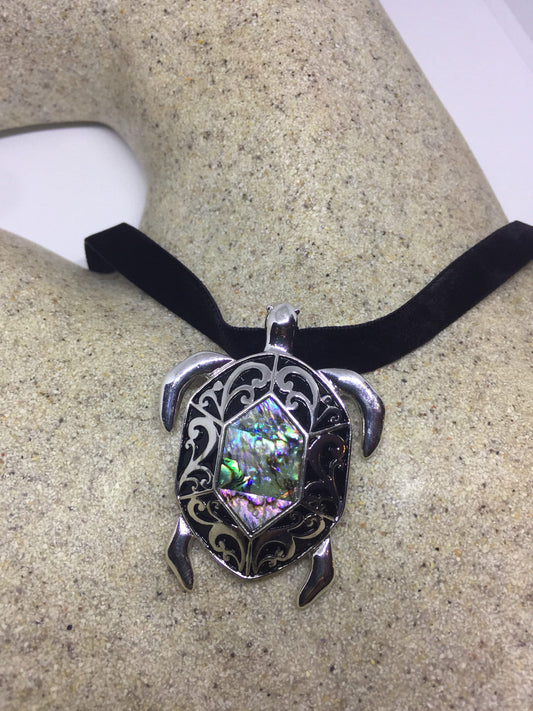 Blue Handmade Gothic Styled Silver Finished Genuine Abalone Sea Turtle Choker Necklace