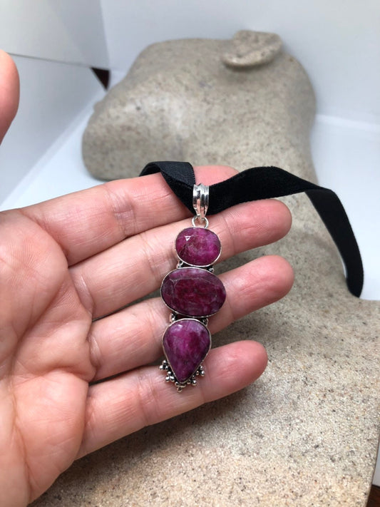 Vintage Pink Raw Ruby Choker Pendant Necklace