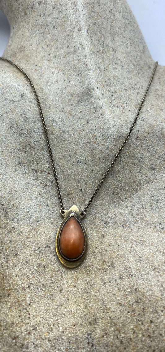 Vintage Orange Coral Golden 925 Sterling Silver Pendant Choker Necklace