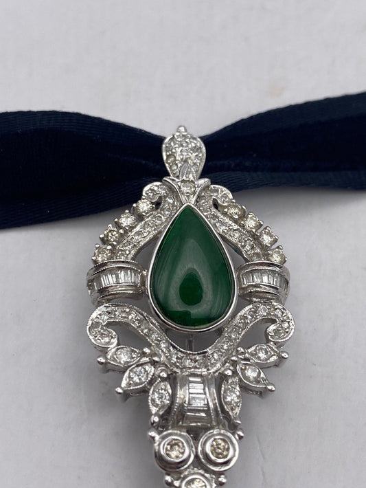 Vintage Burmese Jade Diamond 14k White Gold Choker Pendant Pin Necklace