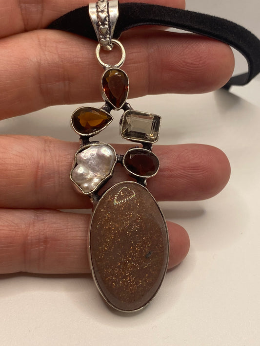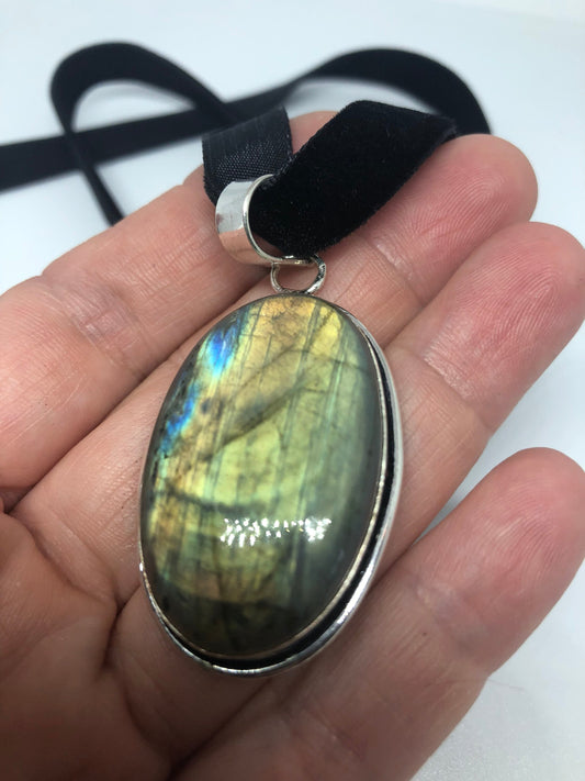 Vintage Silver Genuine Labradorite Gemstone Necklace.