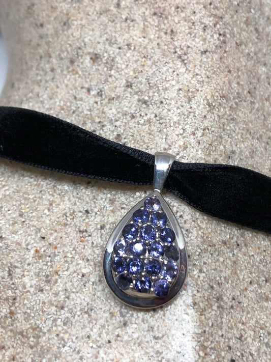 Vintage Pale Blue Genuine Iolite Antique 925 Sterling Silver Necklace