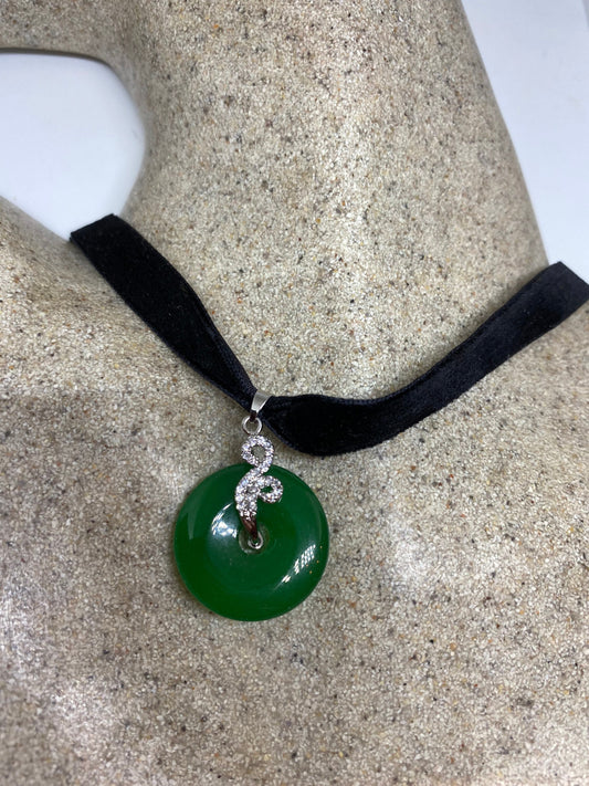 Vintage Green Jade Choker Silver Finish Necklace Pendant